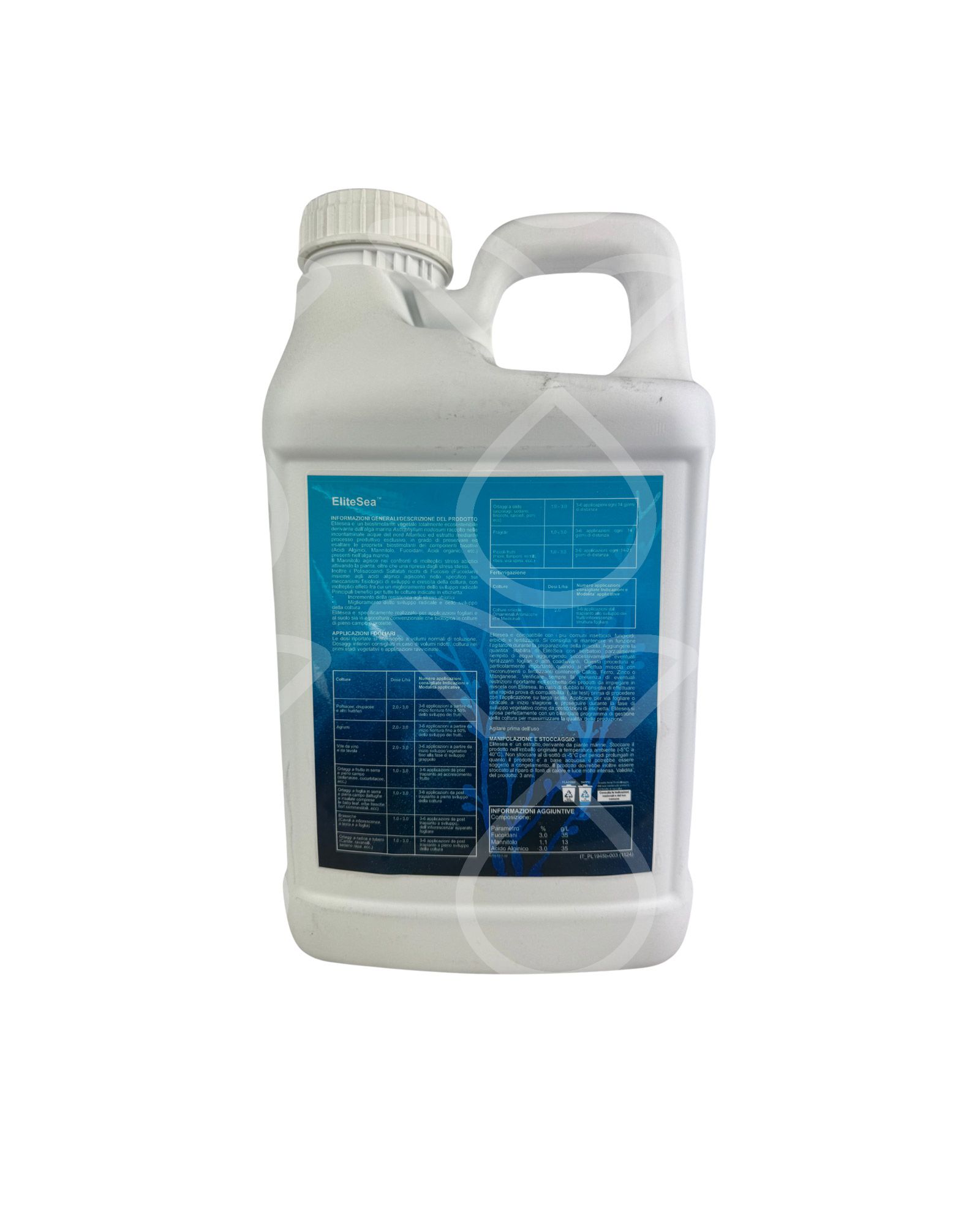 Elitesea e’ un biostimolante vegetale totalmente ecosostenibile derivante dall’alga marina Ascophyllum nodosum raccolto nelle incontaminate acque del nord Atlantico ed estratto mediante processo produttivo esclusivo, in grado di preservare ed esaltare le proprieta’ biostimolanti dei componenti bioattivi (Acidi Alginici, Mannitolo, Fucoidani, Acidi organici, etc.) presenti nell’alga marina.
