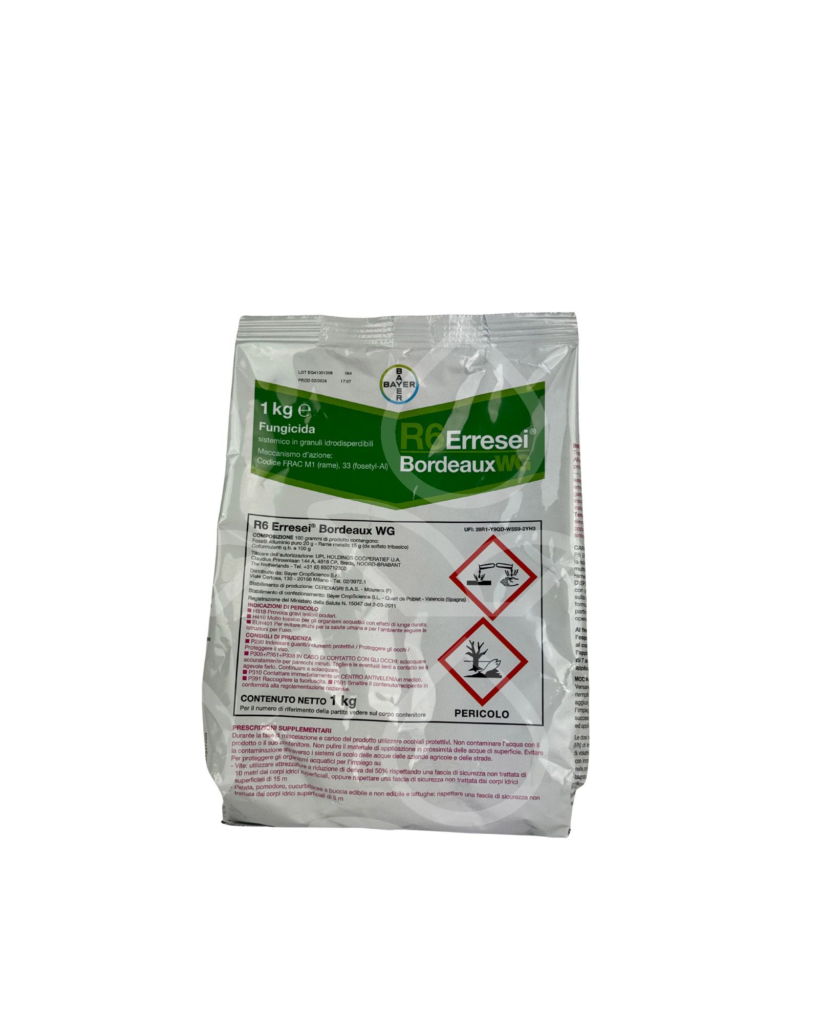R6 Erresei Bordeaux WG è il prodotto sistemico a base di Fosetil-Al e Rame solfato in grado di garantire una protezione di lunga durata dei frutti e della vegetazione da peronospora e batteriosi.