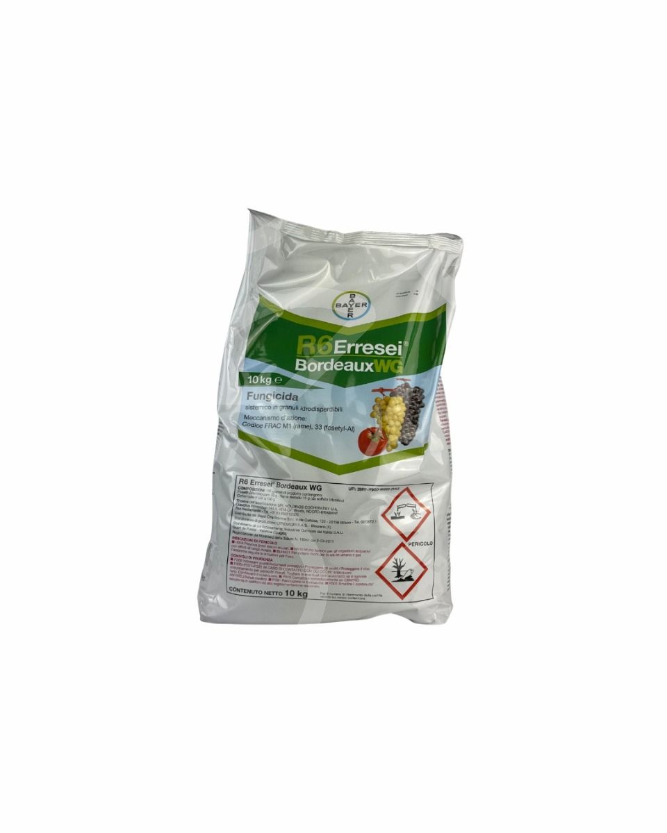 R6 Erresei Bordeaux WG è il prodotto sistemico a base di Fosetil-Al e Rame solfato in grado di garantire una protezione di lunga durata dei frutti e della vegetazione da peronospora e batteriosi.