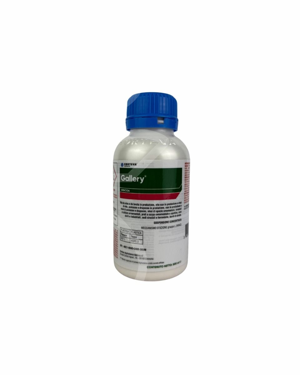 Gallery è un erbicida selettivo a base di Isoxaben, un principio attivo appartenente alla famiglia chimica delle benzammidi che possiede un meccanismo d’azione d’inibizione della biosintesi della cellulosa nella parete cellulare nelle infestanti sensibili (appartiene al gruppo “L – Inibitori della sintesi della parete cellulare” secondo la classificazione del HRAC).