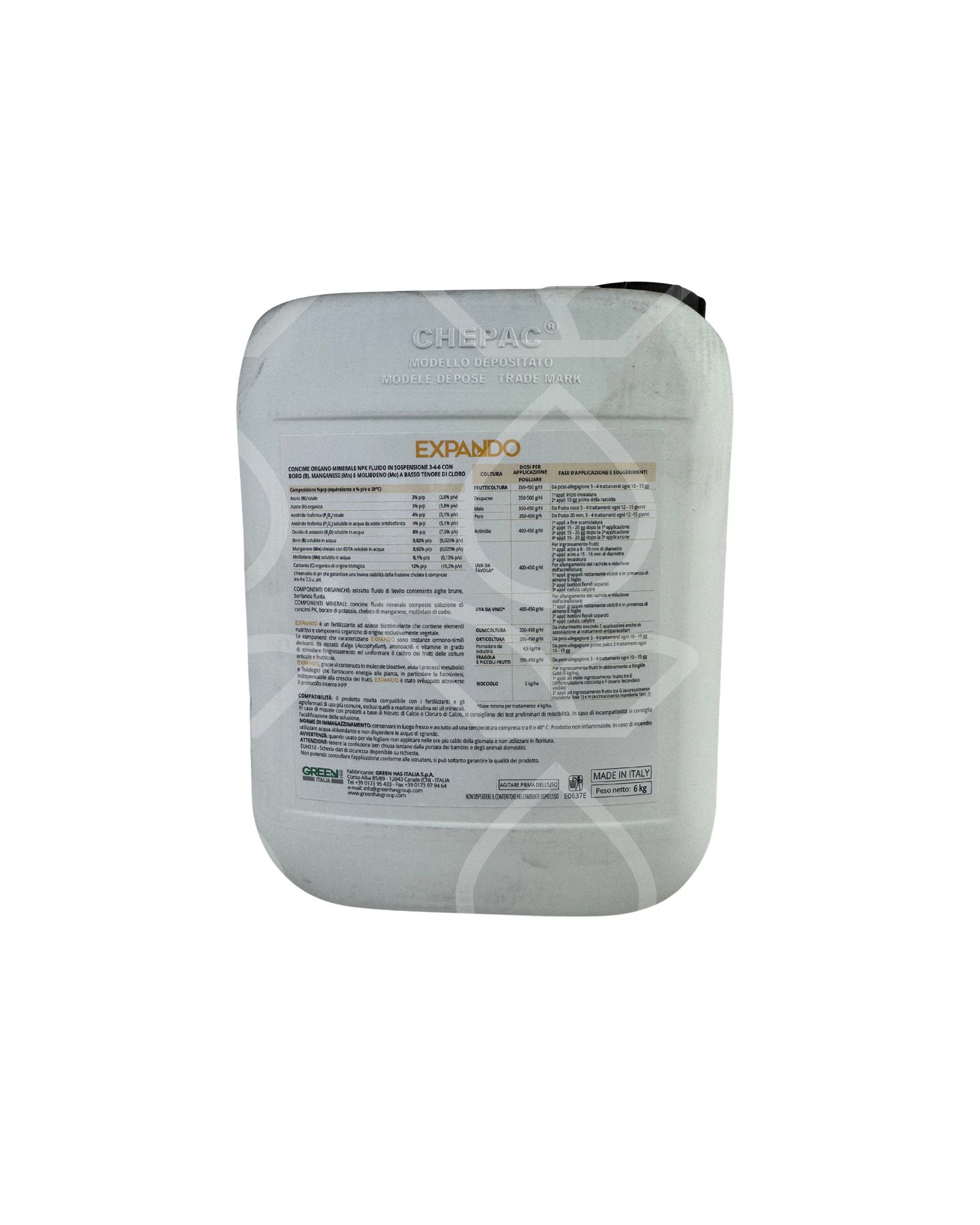 EXPANDO inoltre contiene elementi minerali scelti in modo bilanciato per sostenere i processi metabolici e fisiologici indispensabile alla crescita dei frutti.