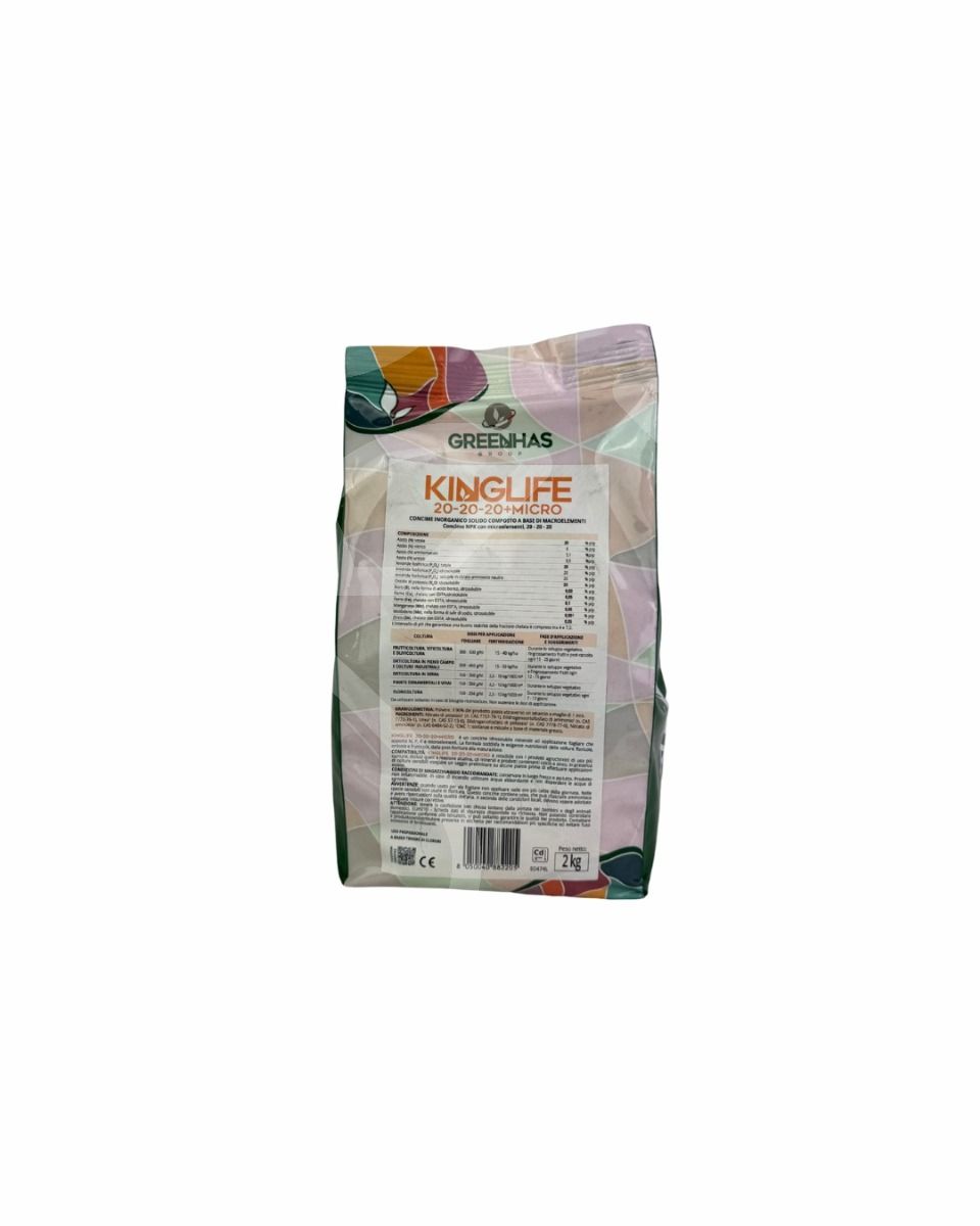KINGLIFE 20-20-20+MICRO è un fertilizzante NPK idrosolubile indicato per tutte le fasi fenologiche delle colture floricole, orticole e delle piante da frutto.