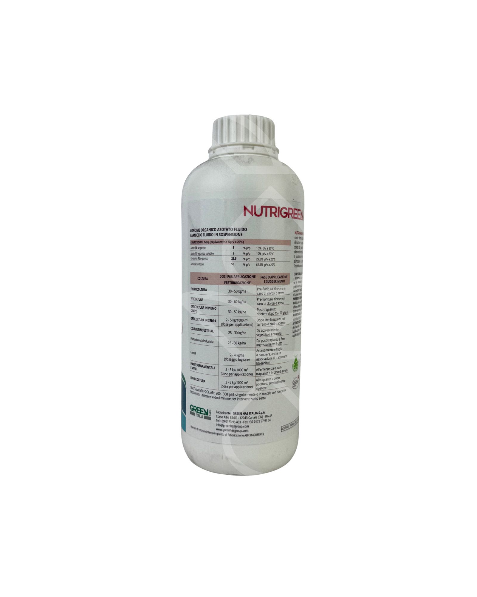 NUTRIGREEN AD è un formulato che apporta aminoacidi come fonte azotata prontamente assimilabile permettendo di nutrire la pianta anche in situazioni avverse, riduce gli stress da post trapianto e favorisce l’assorbimento degli elementi nutritivi.